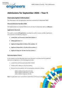 WMG Academy Coventry Year 9 Oversubscription